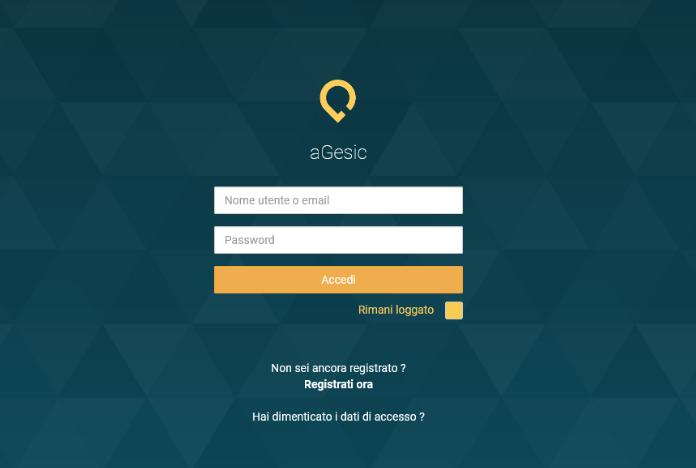 Ora sei pronto per accedere al pannello di controllo di aGesic. Inserisci nel form i dati di login impostati in fase di registrazione. Segui il tour guidato che ti assisterà per il passaggio successivo: la creazione del Dispositivo.